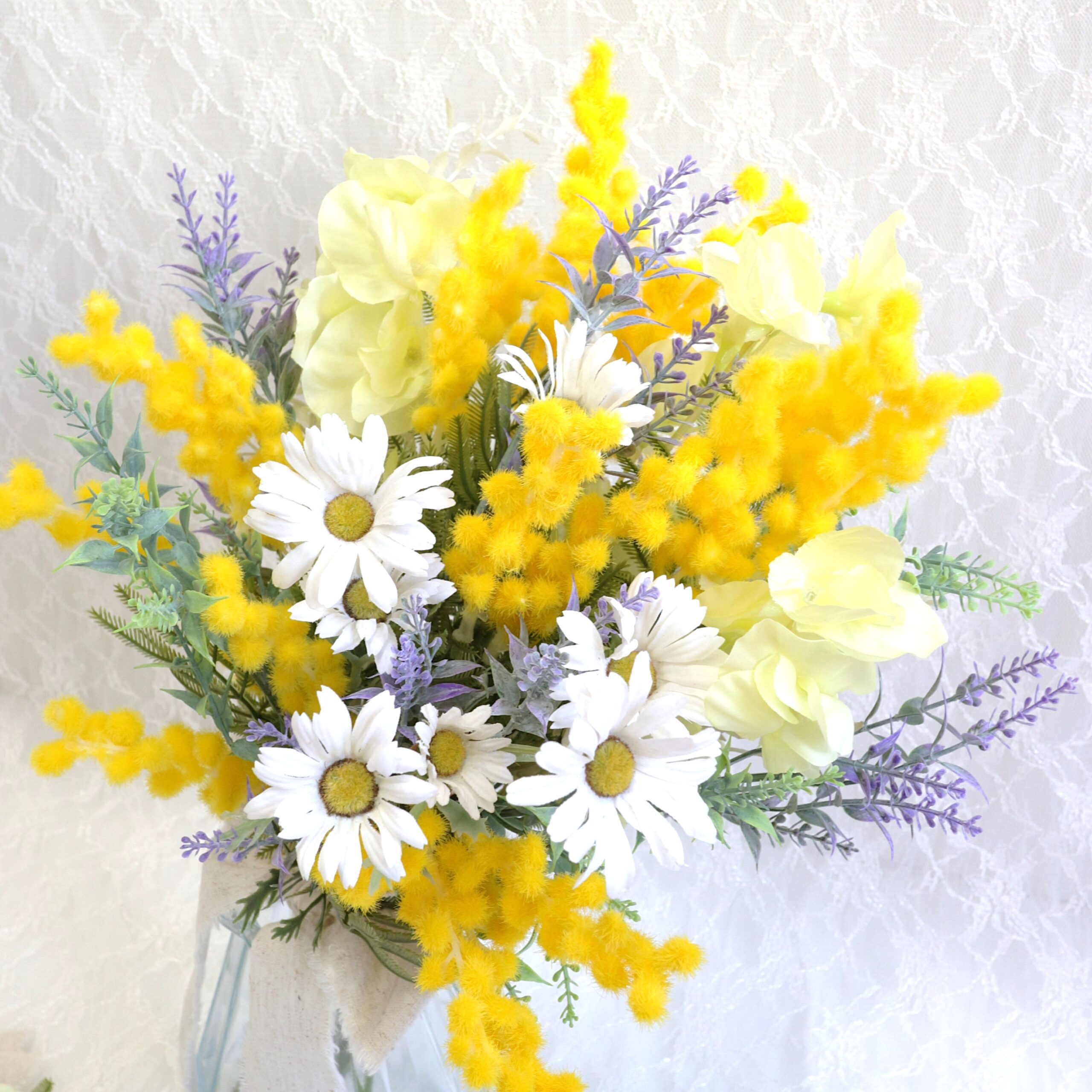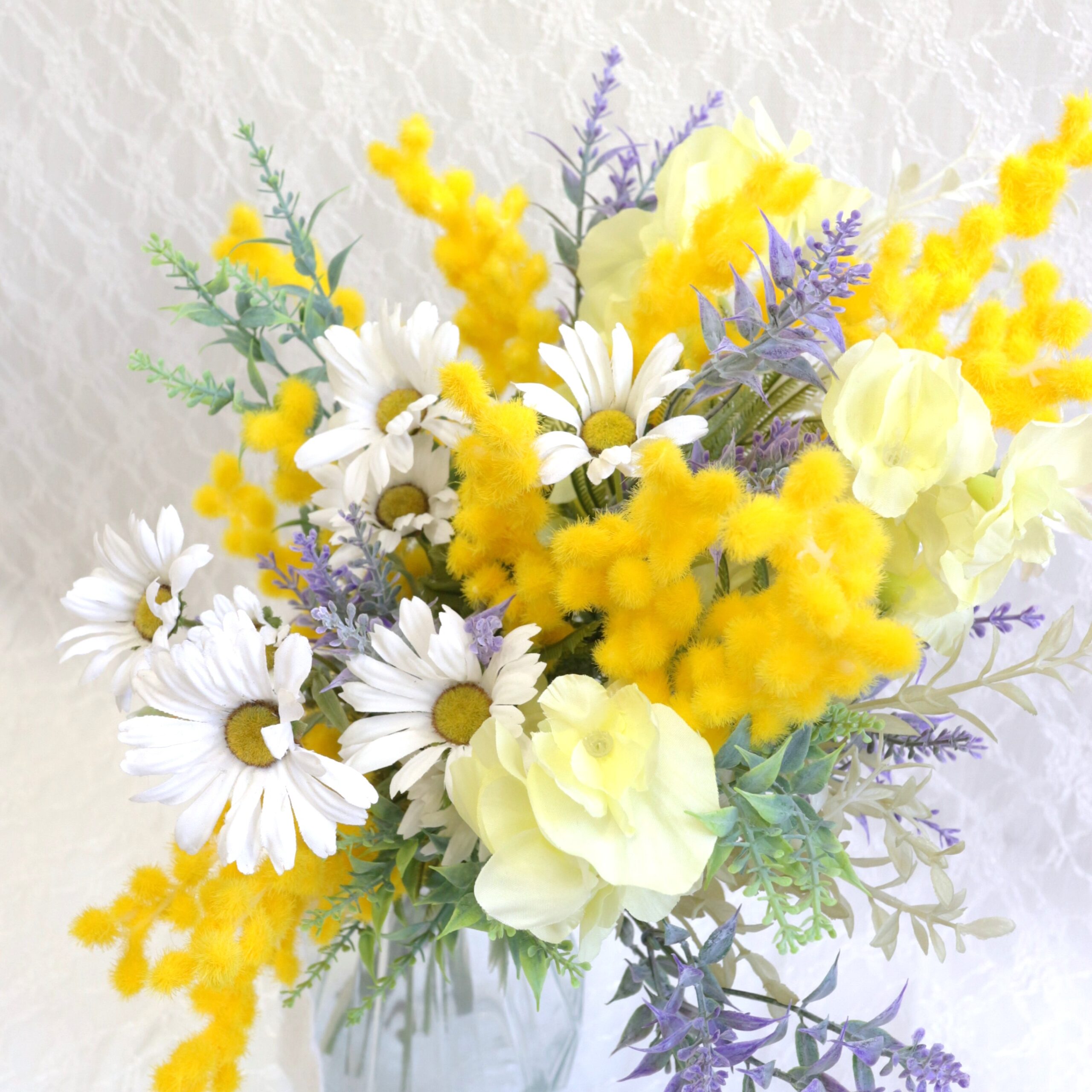 挙式後もインテリアとして末永くお楽しみいただけます。主な使用花材:ミモザ・ラベンダー・マーガレット・スイトピーなど